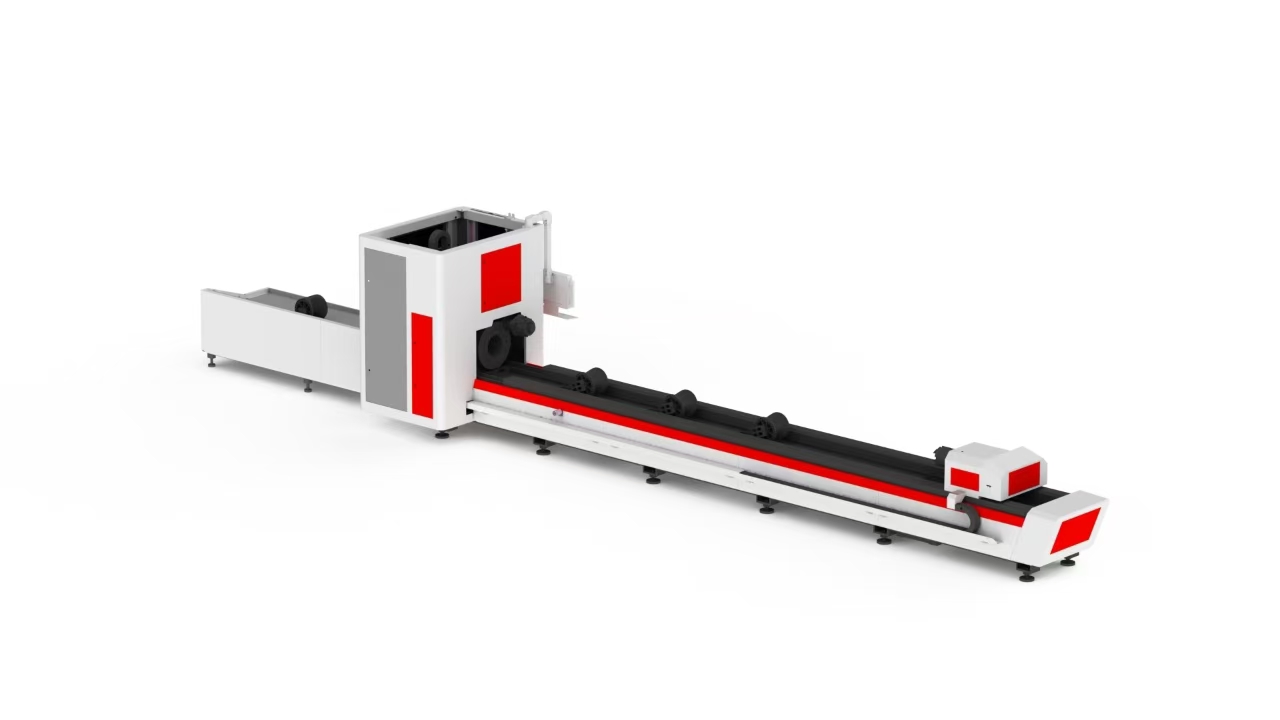 This laser tube cutting machine can be equipped with follow-up support, automatic loading and unloading, and front chuck offside.
